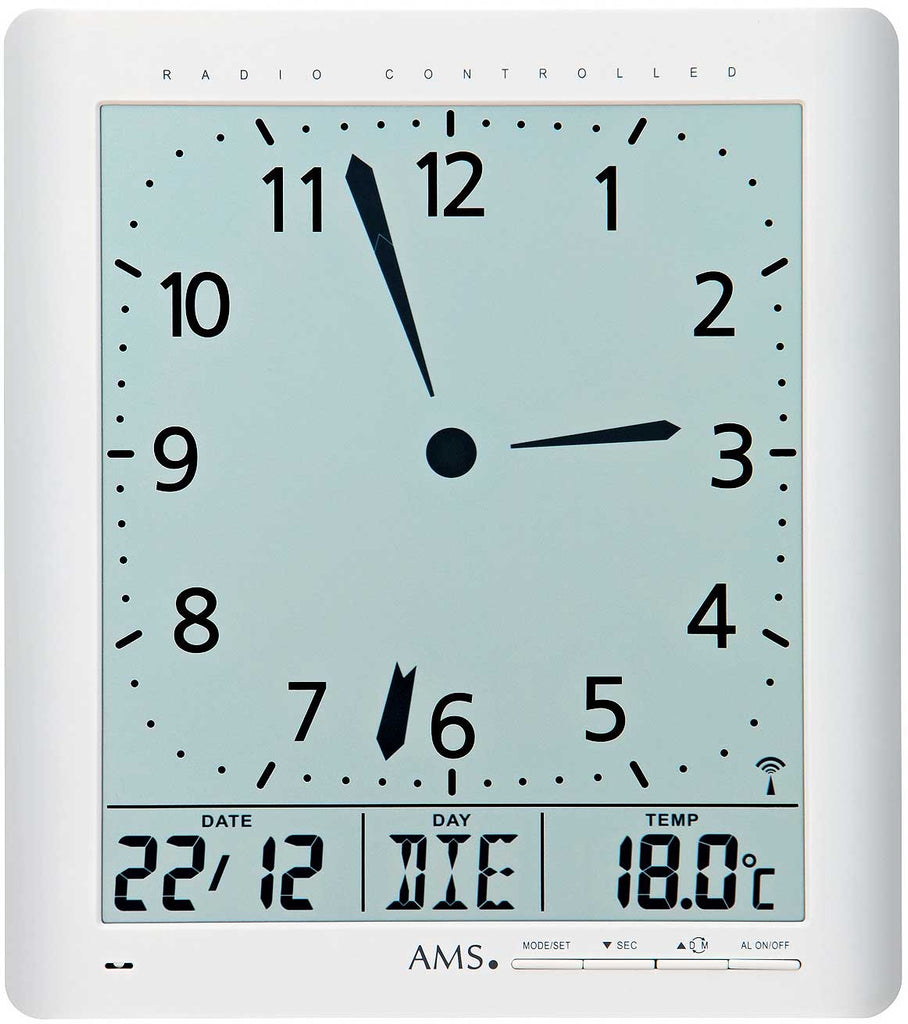 AMS Wall Clock 24x21x3 cm Plastic • Radio-Controlled • Analog & Digital • Temperature Display