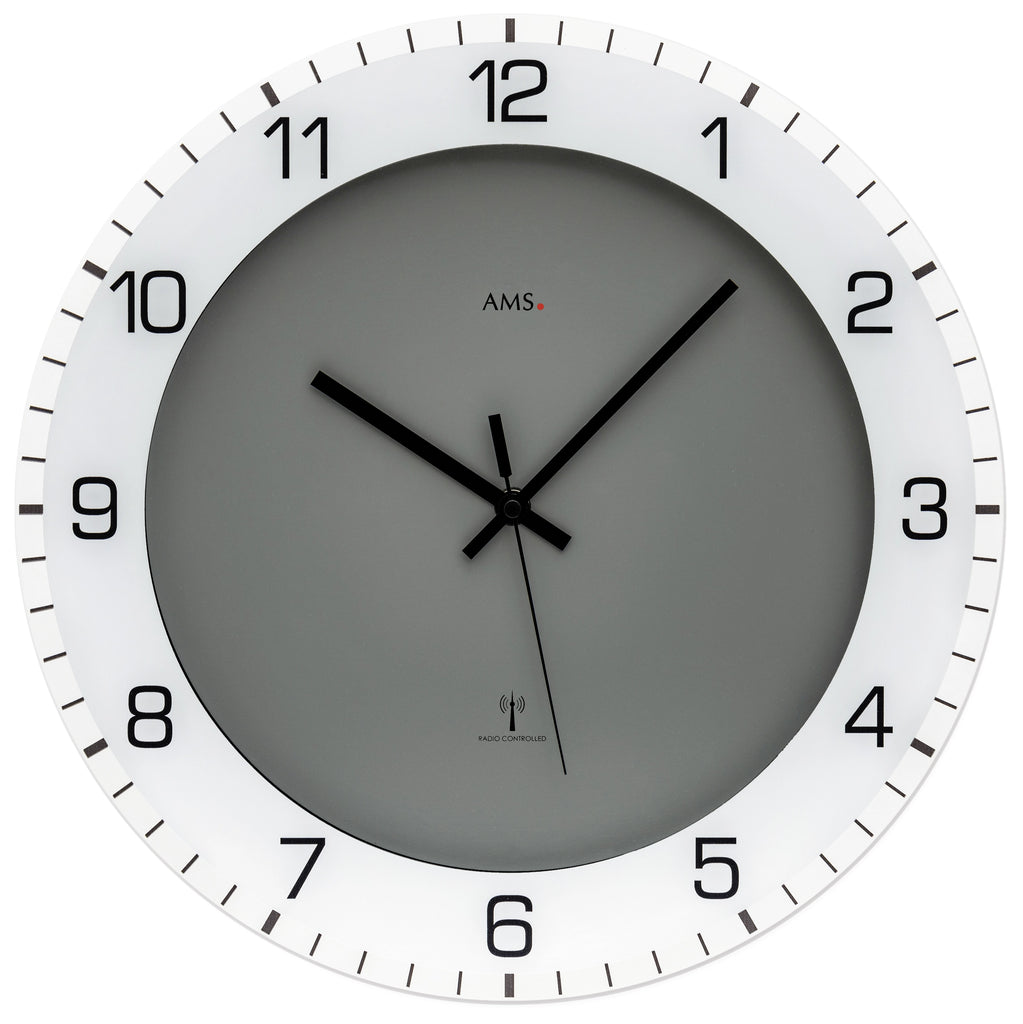 AMS Wall Clock 38 cm Ø Plastic, Glass • Precise Radio-Controlled Movement • Modern Design