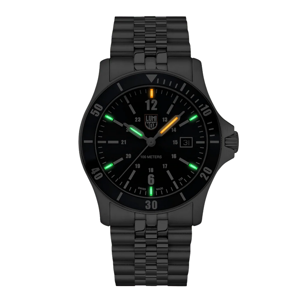 The striking blue dial is protected by an extremely scratch-resistant, anti-reflective sapphire crystal and is housed in a high-quality 316L stainless steel case. At the heart of the watch is the innovative Luminox Light Technology (LLT), which guarantees readability in any situation – without any external light source or button press.