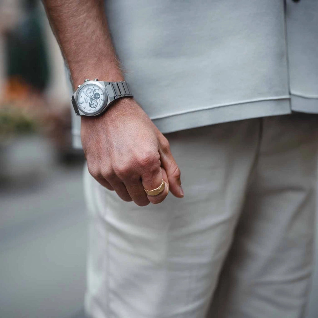 - Super Titanium™ Fertigung sorgt für ein extrem leichtes Tragegefühl und ist dabei fünfmal härter als herkömmlicher Edelstahl.