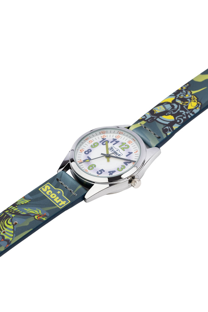 Diese Uhr gehört zur exklusiven Scout-Kollektion, die perfekt auf die beliebten Designs der Scout-Schulranzen abgestimmt ist.